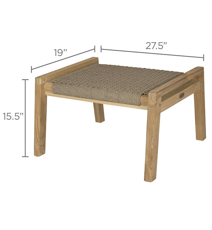 The Admiral Ottoman is a very comfortable contemporary foot rest wrapped with synthetic rope. High end features such as “finger Joints” in armrest. Very sturdy and well-suited for both residential and commercial use. All Stainless-steel hardware. Rope material is made from high quality synthetic wicker, covered in a 16-spindle acrylic nylon sock, to maximize strength for outdoor use for decades.