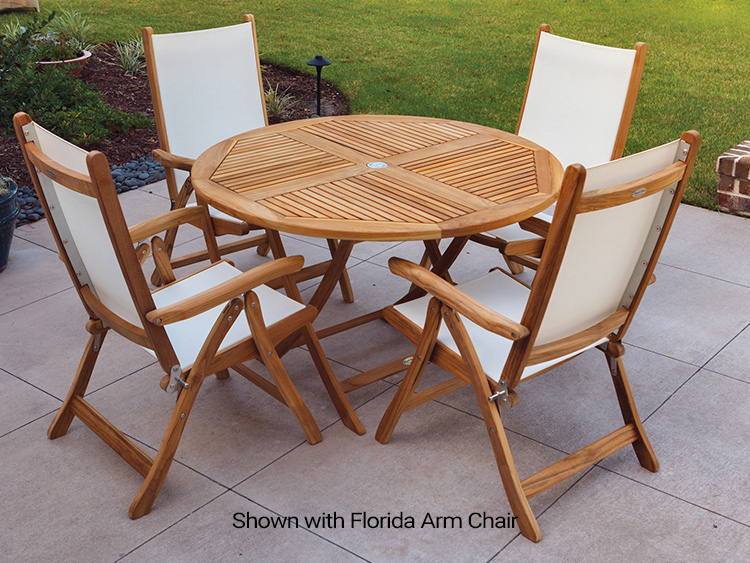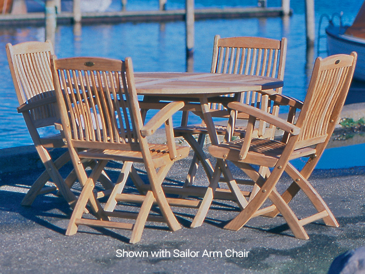 Our Sailor 47 Folding Table easily collapses for quick storage. With a 47" diameter it will comfortably fit 4 chairs. Includes 1.5" and 2" Umbrella Hole. All Stainless steel hardware.