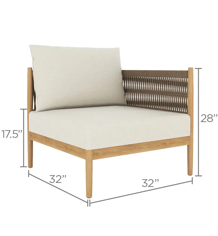 Fully modular, the San Lucas sofa invites endless customization—arrange it as an intimate loveseat, a generous L-shaped sectional, or a streamlined straight sofa that comfortably seats up to six. Deep, plush cushions upholstered in solution-dyed acrylic (available in a single, timeless neutral shade) offer luxurious comfort and exceptional fade resistance, paired with quick-dry foam that shrugs off rain and poolside splashes.