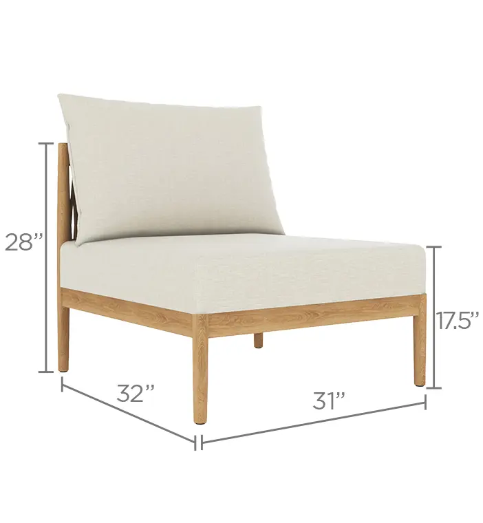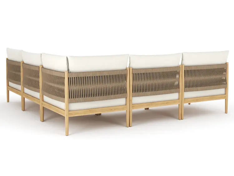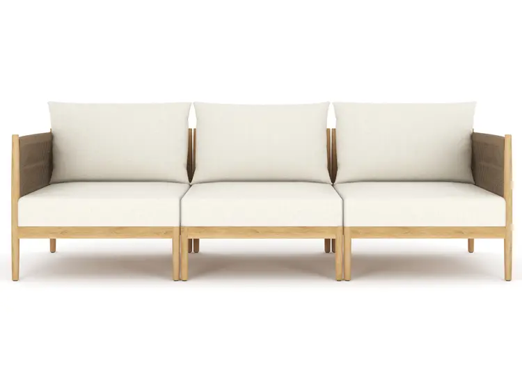 Fully modular, the San Lucas sofa invites endless customization—arrange it as an intimate loveseat, a generous L-shaped sectional, or a streamlined straight sofa that comfortably seats up to six. Deep, plush cushions upholstered in solution-dyed acrylic (available in a single, timeless neutral shade) offer luxurious comfort and exceptional fade resistance, paired with quick-dry foam that shrugs off rain and poolside splashes.
