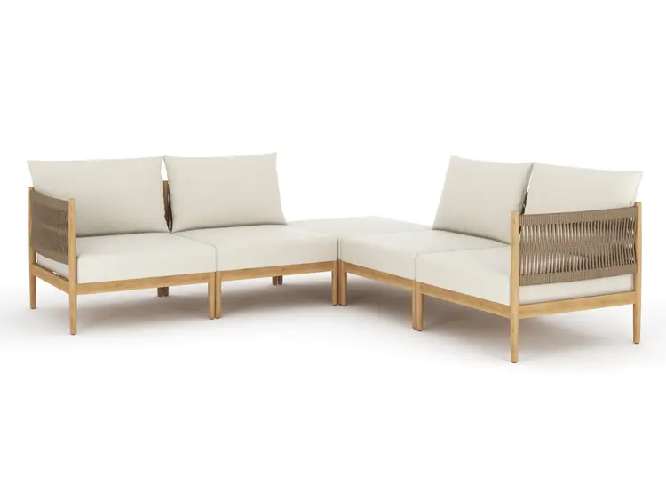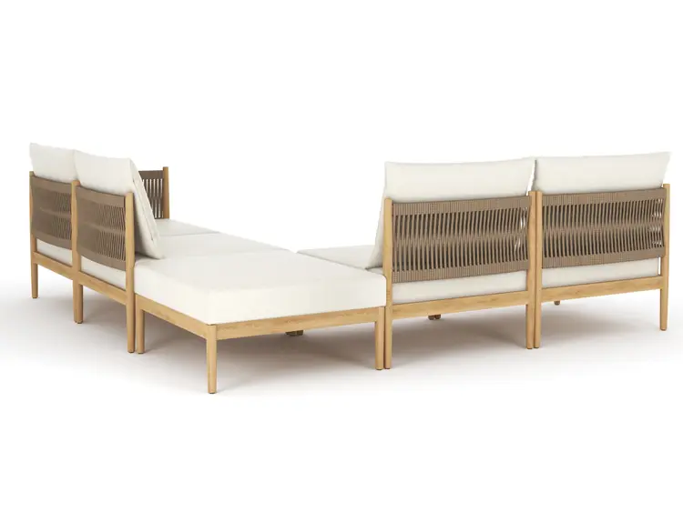 Fully modular, the San Lucas sofa invites endless customization—arrange it as an intimate loveseat, a generous L-shaped sectional, or a streamlined straight sofa that comfortably seats up to six. Deep, plush cushions upholstered in solution-dyed acrylic (available in a single, timeless neutral shade) offer luxurious comfort and exceptional fade resistance, paired with quick-dry foam that shrugs off rain and poolside splashes.