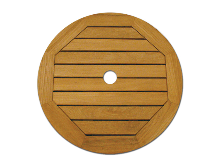 Our Teak Lazy Susan makes dining easier. 2" Diameter Umbrella Hole.